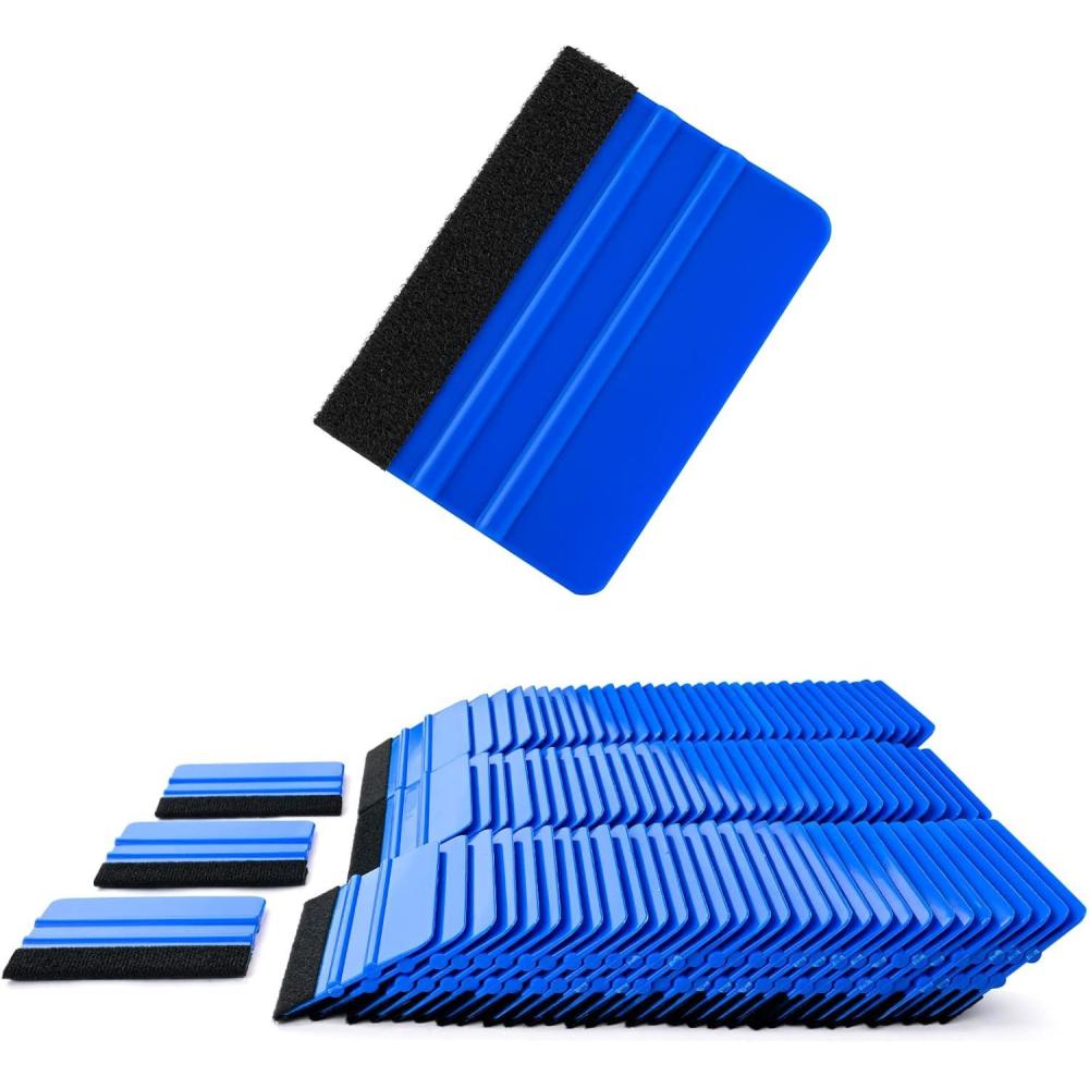 NEWISHTOOL 100 PCS Felt Squeegee for Vinyl - Flexible Plastic Squeegee with Fabric Felt for Vinyl Wrap Application, Bubble Removal, Sign Making, Graphic Decal Installing & Car Wrapping Scraper Tool(Blue)