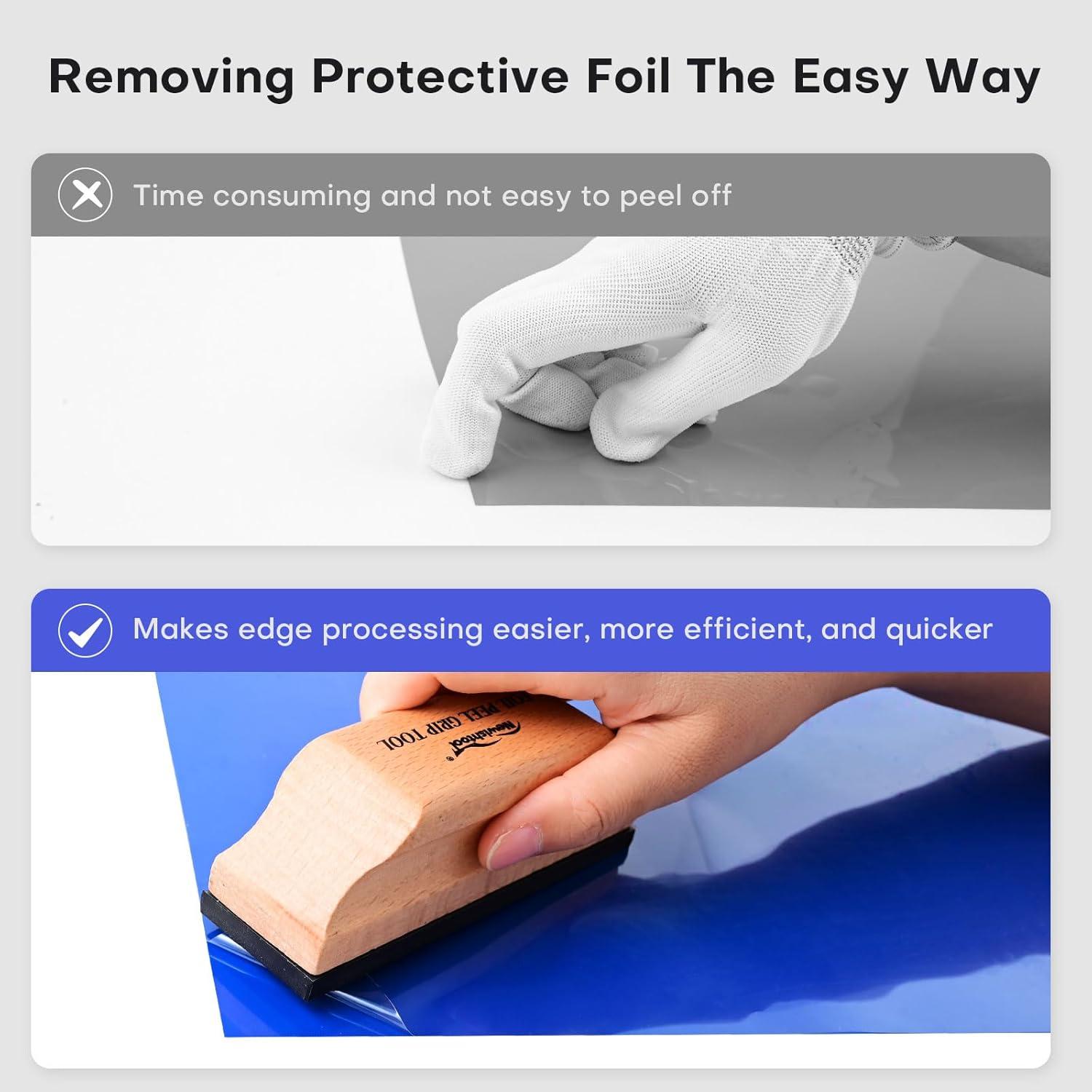 Foil Remover Tool helps you with easily and quicly removing protective foil from vinyl surface.