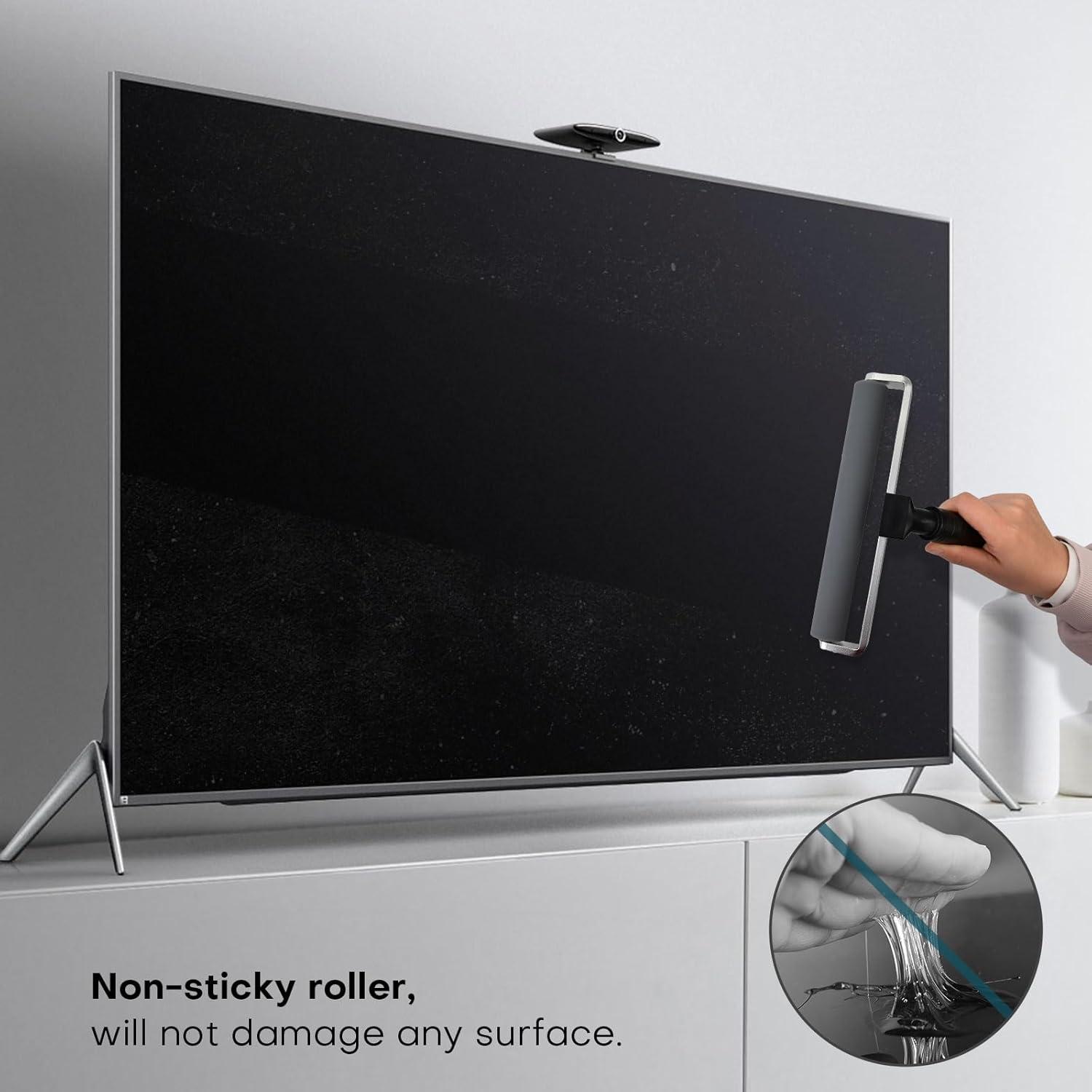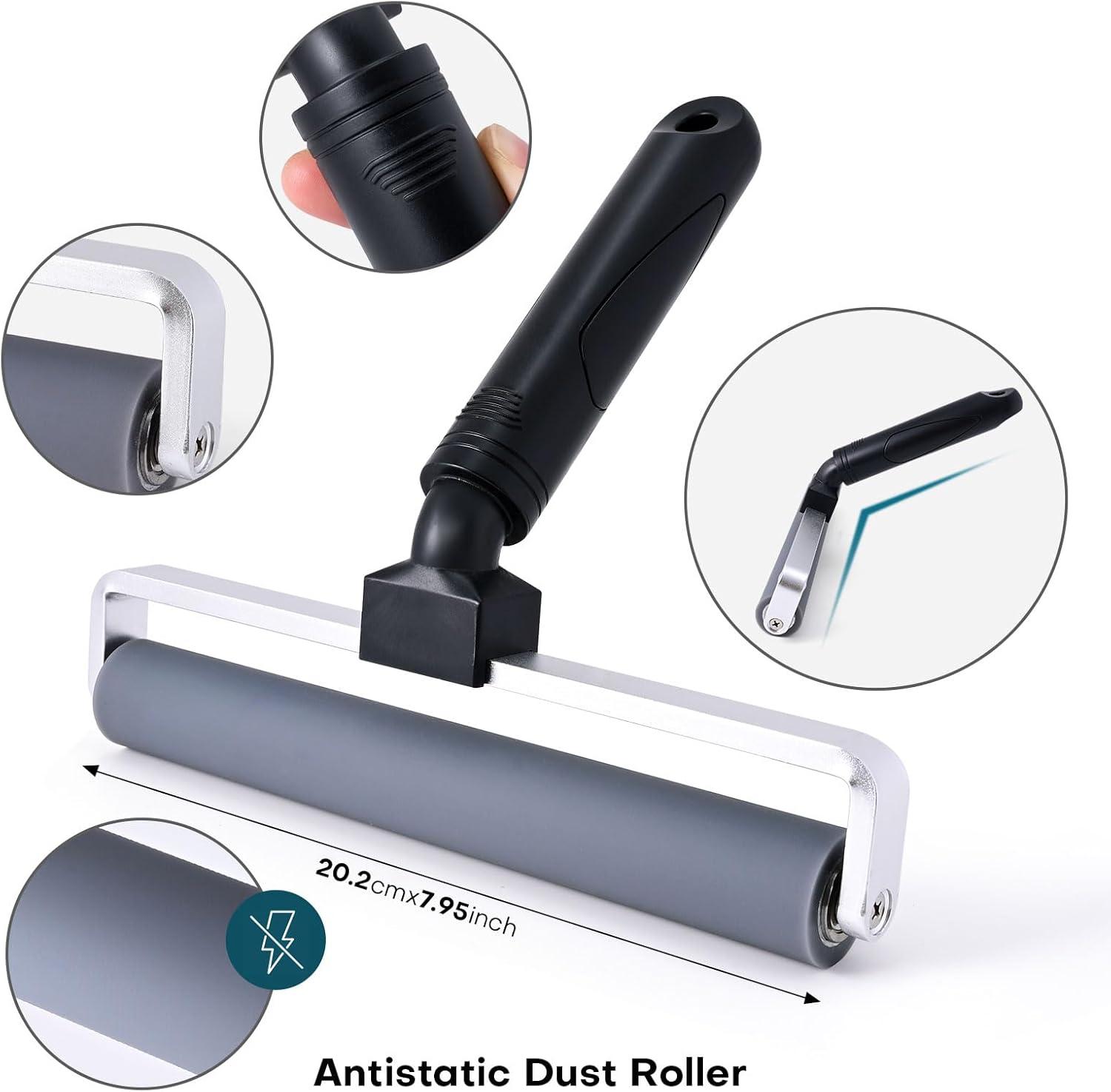 DUST COLLECTION ROLLER: 8-inch non sticky roller that uses static electricity to adsorb tiny dust from the surface of an object onto the roller without damaging the surface of the object. With alloy bearings, thick plastic handle, comfortable and durable.
