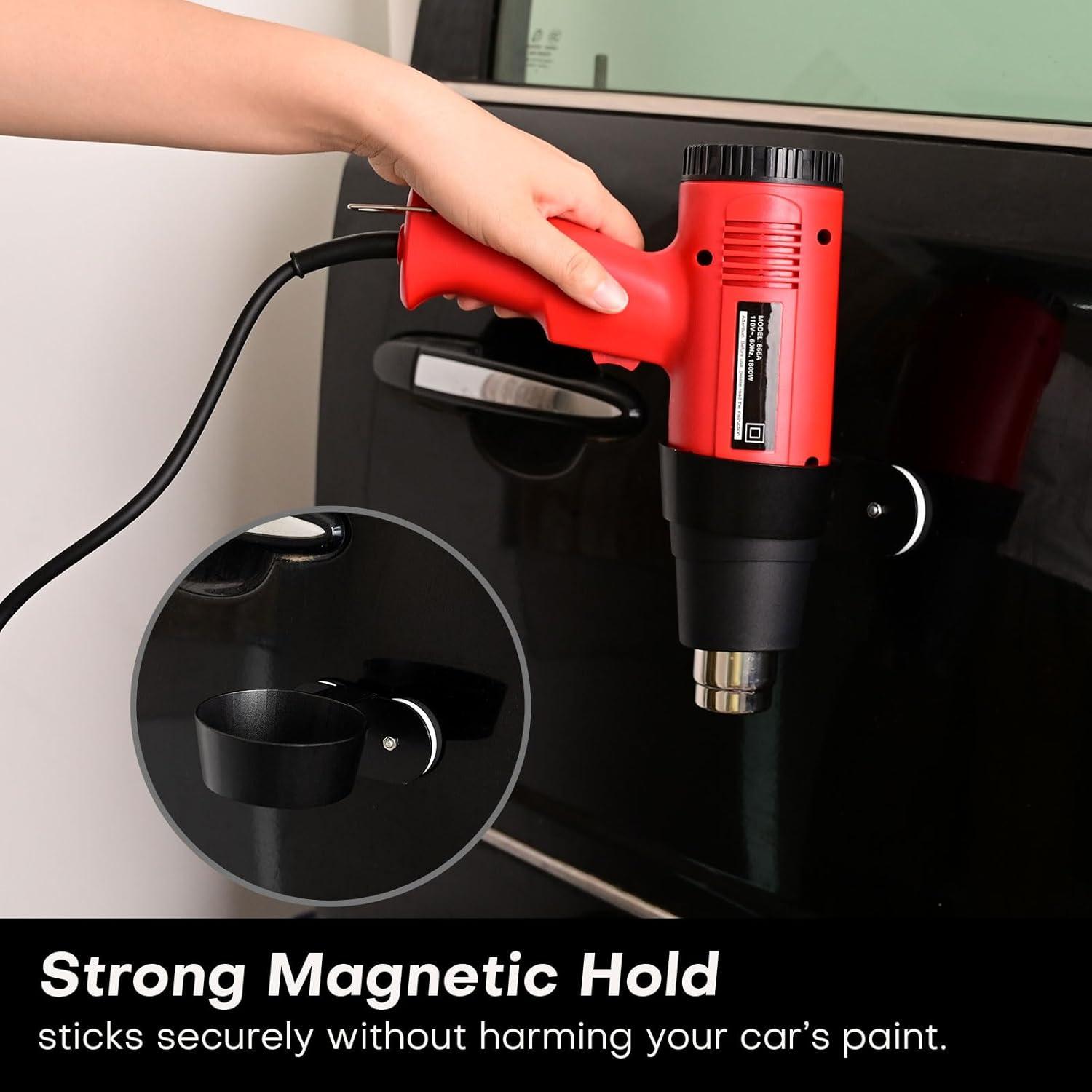 imageNEWISHTOOL Magnetic Heat Gun Holder Storage Ring Rack with Scratch Less Strong Magnet Base for Holding Impact Wrench Vinyl Wrap Heater Hot Air Blower Safety and Easy Use