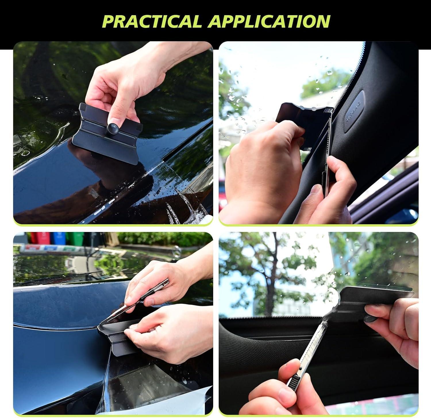Handle Grip Squeegee: this squeegee designed with a small handle to provide good grip when cutting with some hard to reach areas, such as Interior sunroof window film cutting, the grip handle is detachable. Ergonomic handle for better control